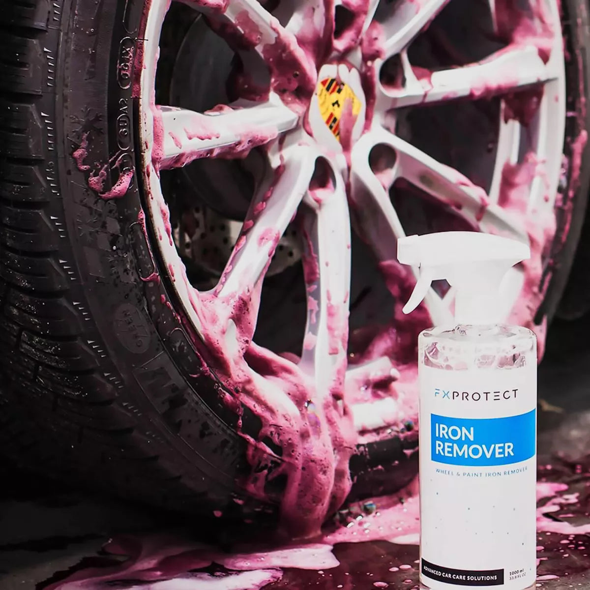 FX Protect Iron Remover ist ein Produkt mit einer fortschrittlichen Formel, mit der metallische Verunreinigungen von lackierten Oberflächen und Felgen sicher entfernt werden können. Entfernt perfekt Bremsbelagstaub sowie hartnäckige flüchtige Rostpartikel. Während der Anwendung unterliegt die zu reinigende Oberfläche einer chemischen Reaktion ("Ausbluten"). Das Produkt ist äußerst effektiv, effizient und einfach anzuwenden.